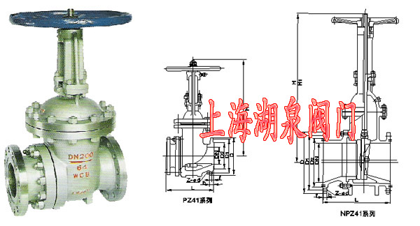 PZ41H 型 PN10~PN63 排渣閘閥:手動、法蘭連接、明桿楔式剛性單閘板,閥座密封面材料為不銹鋼,公稱壓力 PN10~PN63,閥體材料為灰鑄鐵(PZ41H-10 PZ41H-16)、碳素鋼(PZ41H-10C~63)的排渣閘閥。